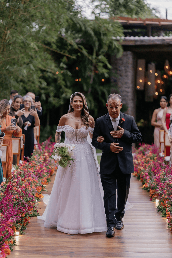 Sim. É só compartilhar o link com os padrinhos. Eles escolhem o presente na lista e pagam via Pix ou cartão — simples e organizado.